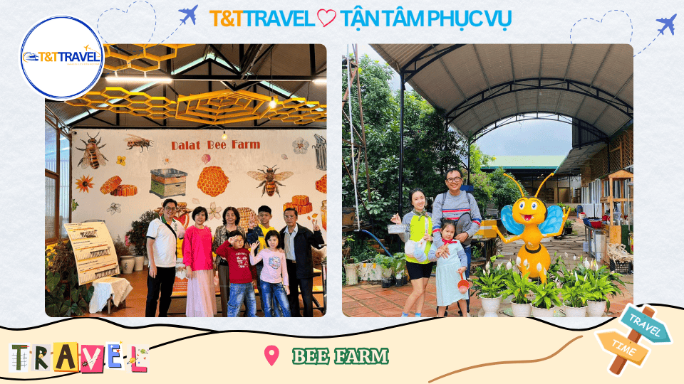 - 9H00: Hướng dẫn viên đưa đoàn tham quan trang trại ong Bee Farm Tà Nung. Tại đây quý khách sẽ được tận tay cầm những kèo ong để chụp ảnh và cùng tìm hiểu những điều thú vị về loài ong mật. Sau đó đoàn sẽ được thưởng thức các hương vị mật ong đặc biệt của Đà Lạt như: mật ong hoa cà phê, mật ong hoa mai anh đào, hoa mè đen, hoa bạc hà,…