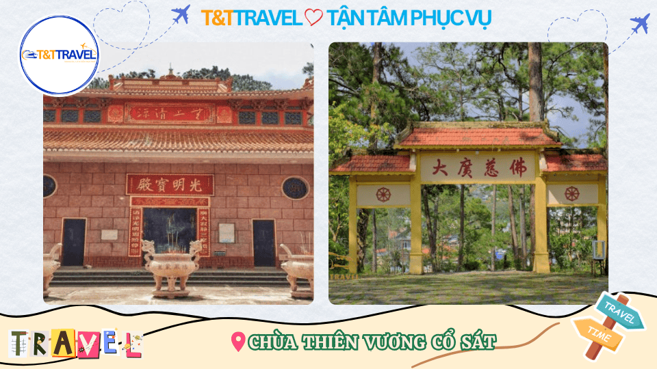 - 8H00: Hướng dẫn viên đưa đoàn viếng chùa Thiên Vương Cổ Sát. Là một ngôi chùa của người Hoa nổi tiếng tại TP. Đà Lạt, nơi có tượng Phật Thích Ca cao khoảng 10m.