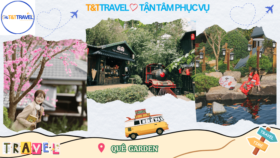 - 10H00: Quý khách sẽ khởi hành tham quan QUÊ GARDEN, nơi được xem là chốn "bồng lai tiên cảnh" theo phong cách NHẬT BẢN được tạo nên bởi vẻ đẹp của rất nhiều loại hoa và cảnh vật thơ mộng.