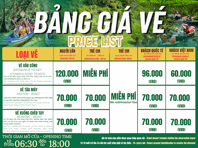 CHÍNH SÁCH ƯU ĐÃI GIÁ VÉ THAM QUAN ĐIỂM DU LỊCH SINH THÁI RỪNG TRÀM TRÀ SƯ
