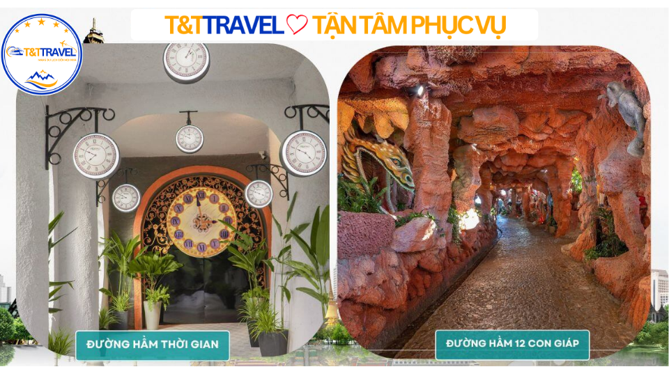+ Đường hầm 12 con giáp trưng bày các linh vật của 12 con giáp, mỗi linh vật được điêu khắc công phu và mang ý nghĩa phong thủy riêng.
